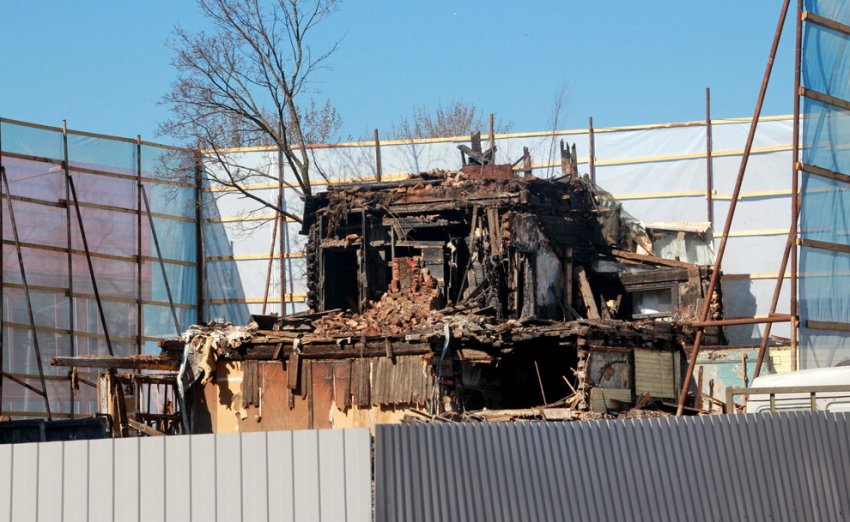 На днях начался снос дома под литерой Б. Он пострадал в результате пожара в 2014 году. Никаких информационных щитов на заборе нет, а потому неизвестно, кто проводит демонтаж и будет ли разобрана литера А.