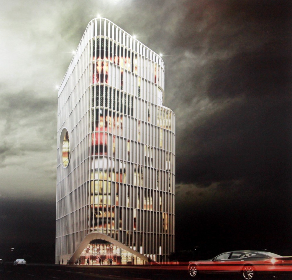 Проект офисного здания для «Стройконтракта» разработало ООО «Архитектурная мастерская „Б2“». Совладелец фирмы Феликс Буянов за три недели не нашел времени на короткий комментарий «Канонеру» о том, является ли его работа реальной или это, как в случае с жилым кварталом в Пригородом, представляет собой не более чем творческую фантазию.