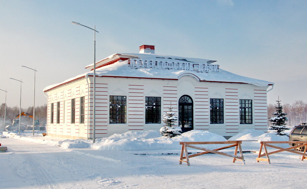 Первым объектом стало одноэтажное нежилое здание при въезде на территорию. На нем установлена вывеска «Петергофские дачи».