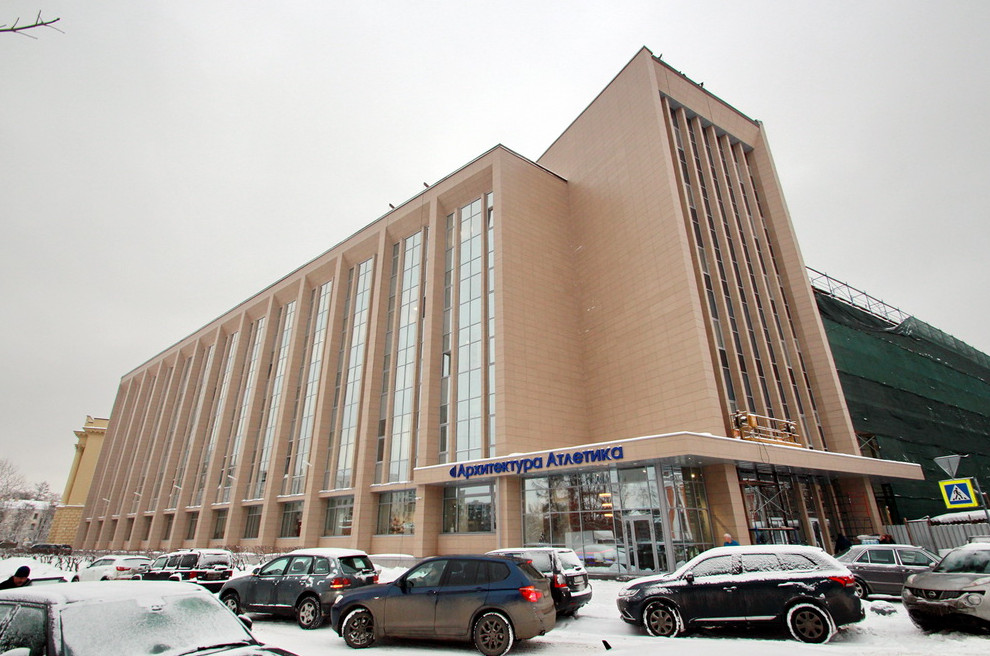 Также проектом предполагалась переделка фасада корпуса в Таврическом. На него надели короб для укрепления керамогранита, оконные переплеты заменили новыми с другим рисунком, а с первого этажа убрали ребра. Сейчас работы подходят к концу.