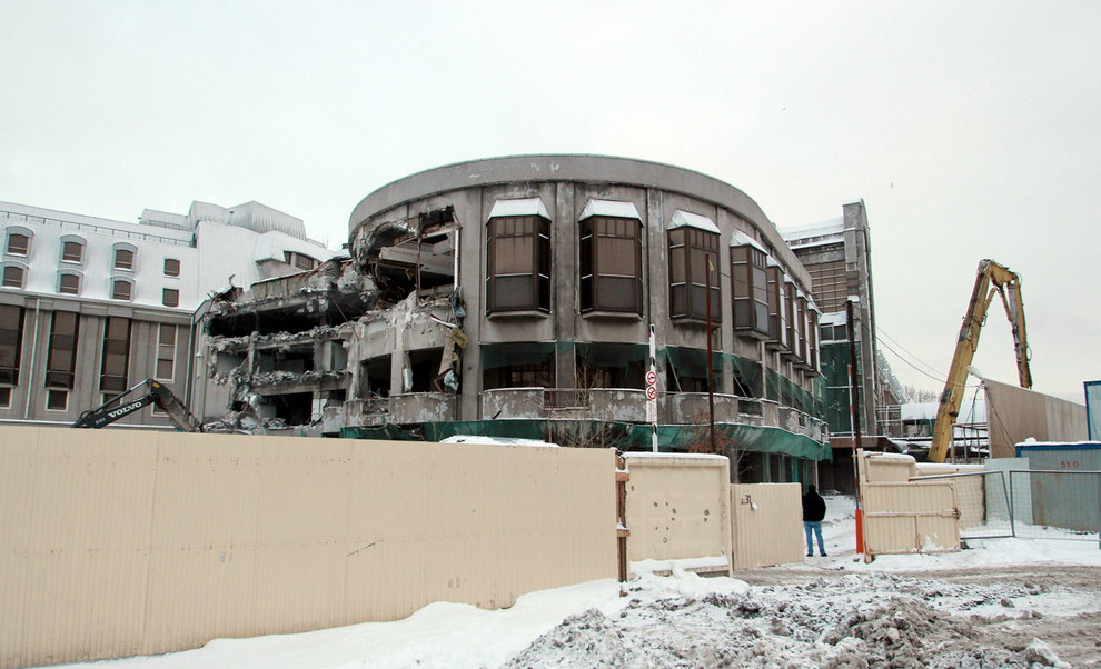 Вчера очевидцы заметили и рассказали «Канонеру», что начался снос гостиницы. Работы проводит арендованная техника. Кто исполнитель, выяснить не удалось. По некоторым данным, демонтаж завершится весной 2019 года.
