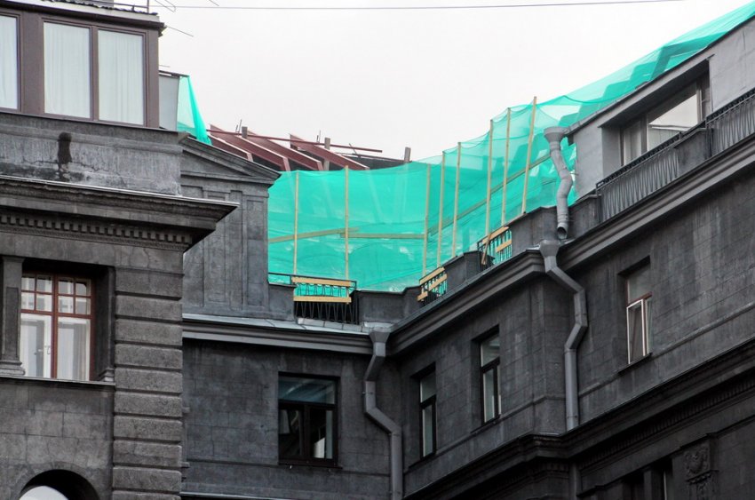 КГИОП легализовал строительство мансарды дома Веге на набережной Крюкова канала, 14. Она исказит облик кровли, делая заметно выше ее часть, но охранное ведомство сочло это законным.