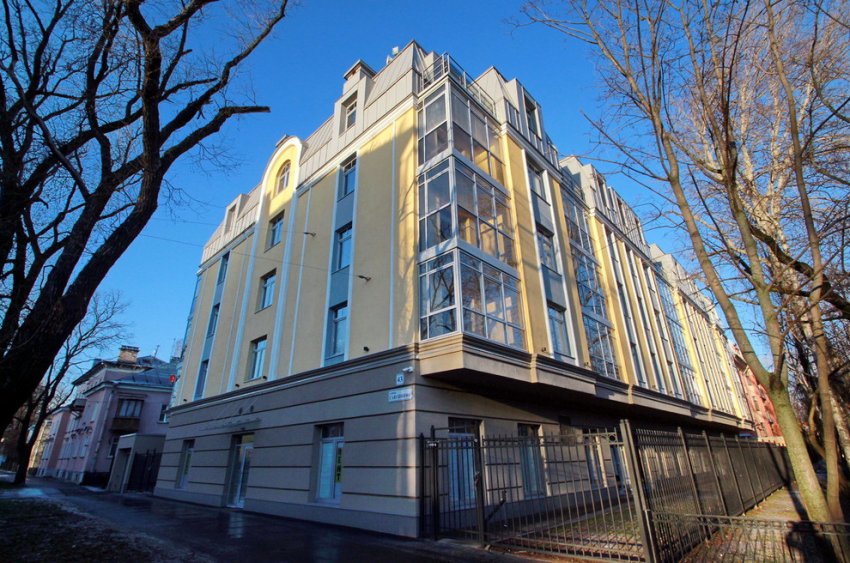На смену двухэтажному «немецкому коттеджу» на улице Савушкина, 43, пришел пятиэтажный жилой дом. Его фасады выполнены в «спальной» стилистике.