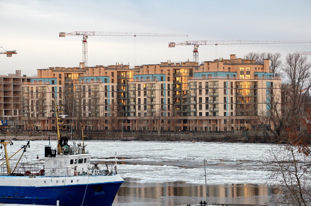 На берегу Малой Невы на Петровском острове завершилось строительство жилого дома. Из его окон открываются панорамы на промышленные территории и дорожные развязки.