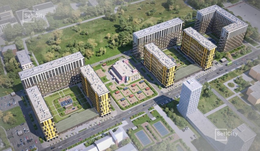 Проект выполнило ООО «Интерколумниум» Евгения Подгорнова. Это семь 14-этажных корпусов и 3-этажный детский сад на 190 мест. Плановый срок ввода в эксплуатацию — конец 2020 года.