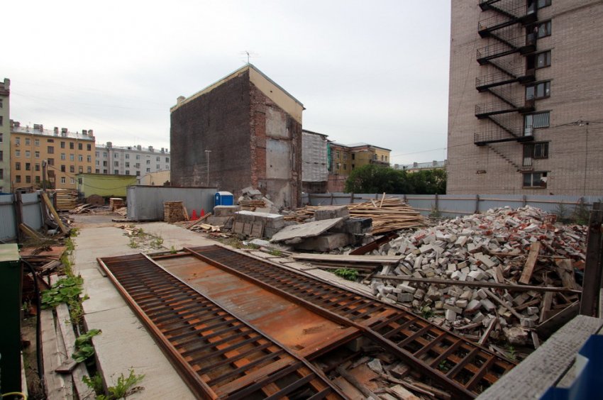 Сейчас никаких работ не ведется, а площадка завалена строительным мусором, образовавшимся после демонтажа.