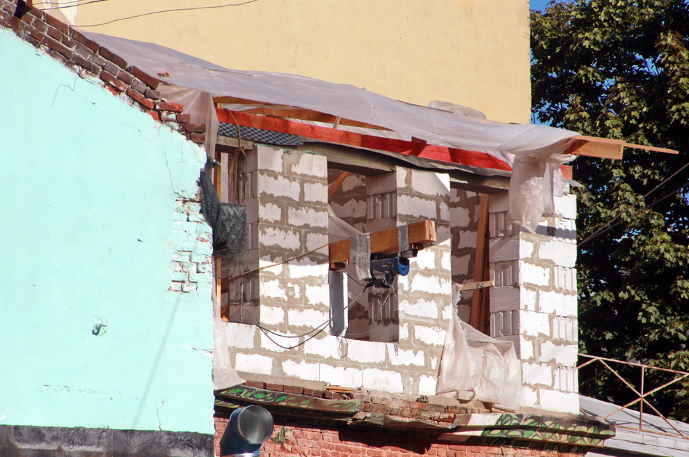 Одного процесса господину Басалыгину, видимо, показалось мало. Сейчас ведется надстройка дворового флигеля дореволюционного дома. Новый, четвертый этаж выполнен из пенобетона. Информации о выданном разрешении «Канонеру» найти не удалось.