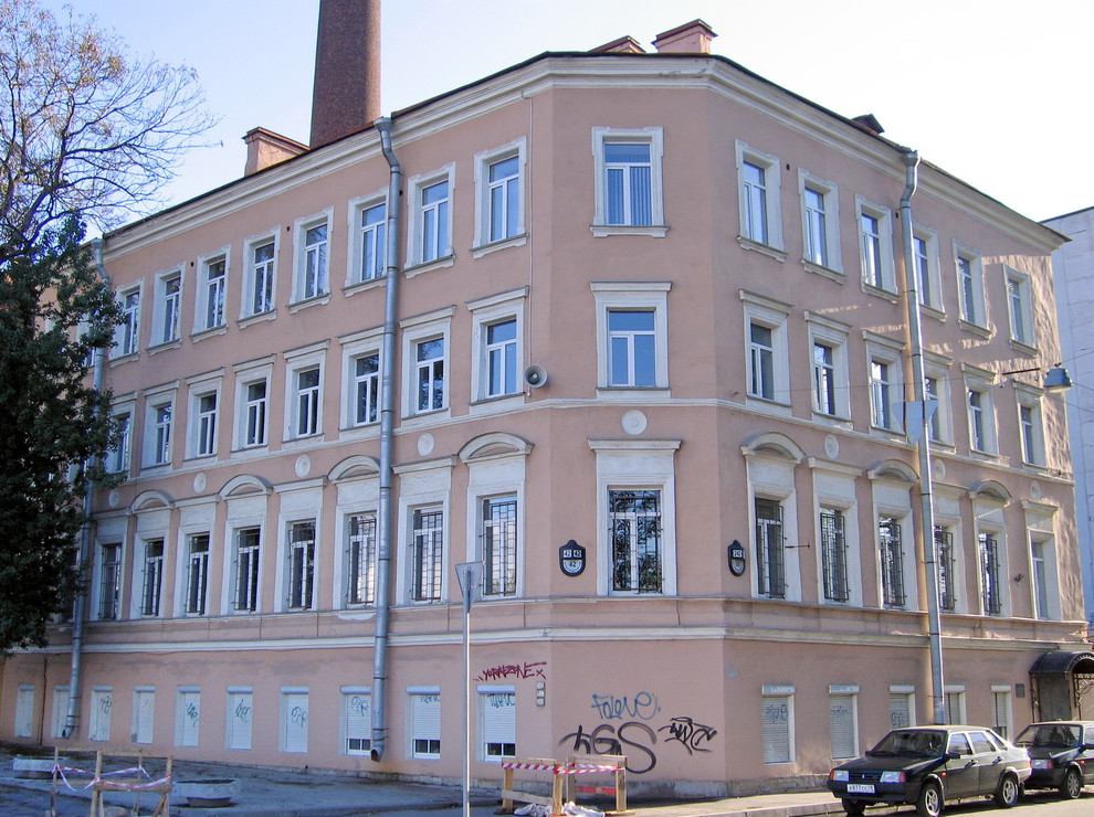 Четырехэтажное угловое здание в Казарменном переулке, 2/42, было построено до революции, предположительно в конце XIX века. Памятником оно не числится.