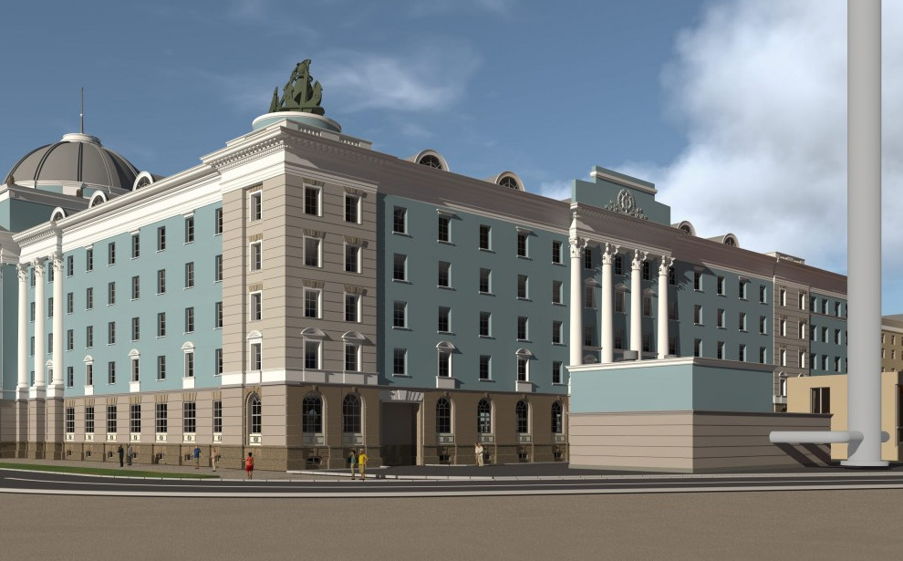 Строительство дополнительного здания Нахимовского училища началось осенью 2017 года. Ради него снесли два сталинских детских сада. К настоящему моменту в конструкциях пятиэтажный объект готов.