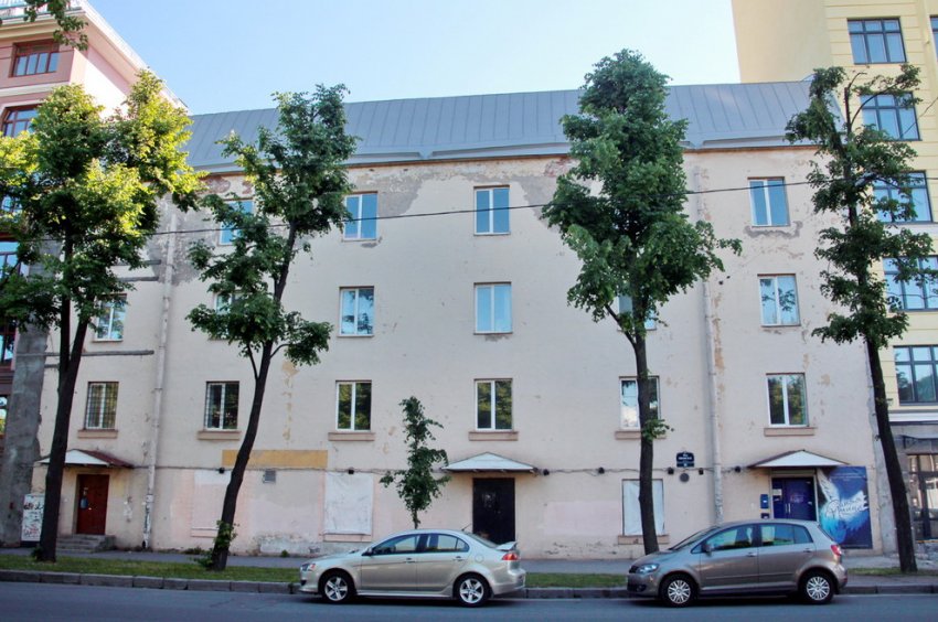 Четырехэтажное здание, выходящее на уличный фронт, было построено до революции. Прежде оно имело невысокую кровлю, видимую только издали. Но весной по заказу собственника ООО «Галс» дом принялись надстраивать пятым этажом, выполненным из металлического каркаса.
