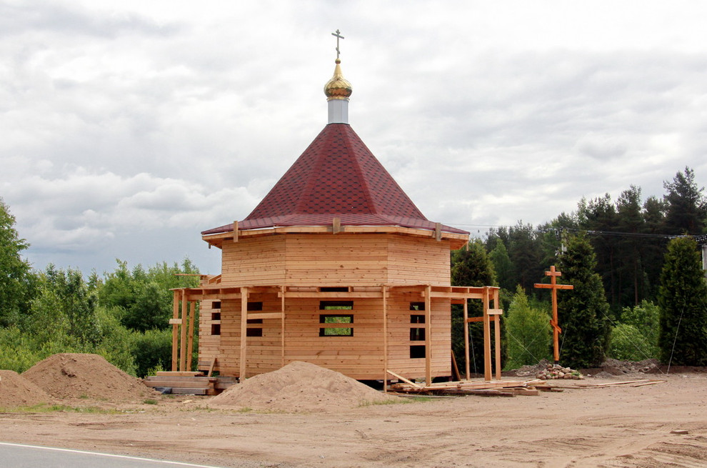 Первым зданием на южной стороне Горского шоссе в поселке Левашово станет церковь. Ее, деревянную, сейчас строят на берегу Левашовского канала.