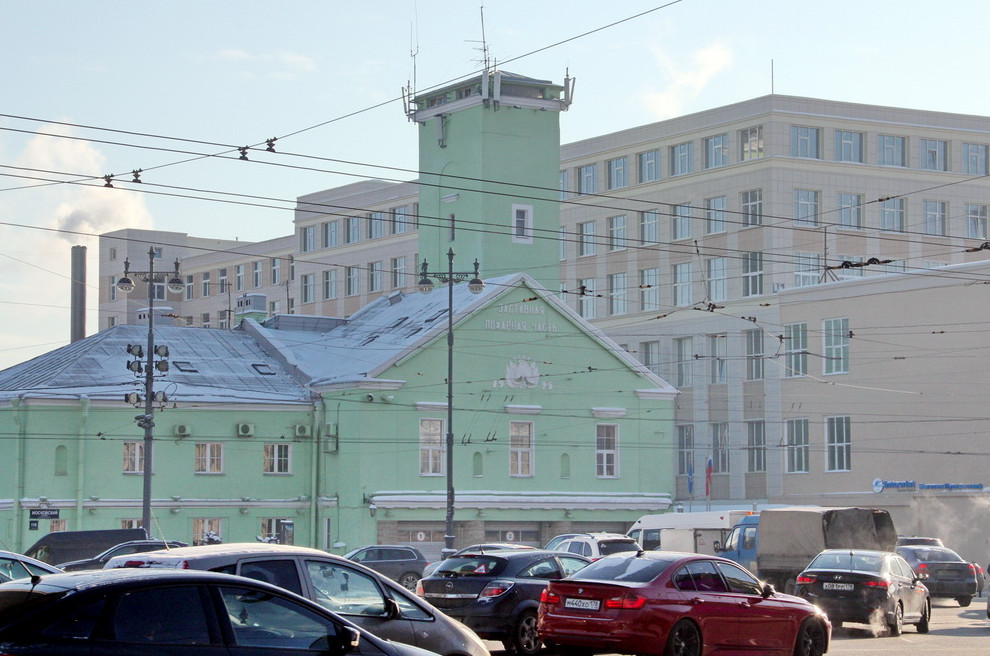 Завершилась реконструкция здания на площади Московские Ворота. Советскую четырехэтажку надстроили тремя дополнительными этажами, что изменило фон Заставной пожарной части.