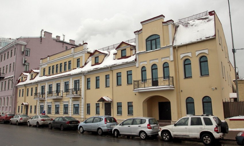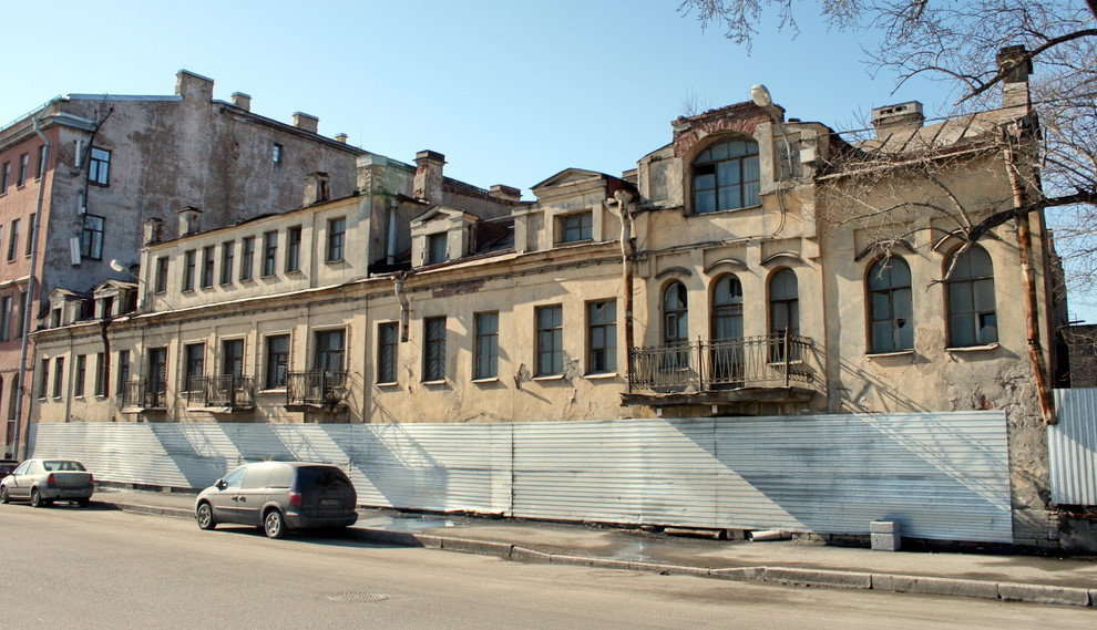 Двух-трехэтажный дом был возведен в 1878 году по проекту архитектора Александра Долотова. В 2015 году ООО «Н. Э. Ф. — Санкт-Петербург» получило разрешение на реконструкцию его под «общественно-деловой центр». Начальник службы строительного надзора Леонид Кулаков, сославшись на заключение КГИОПа, ранее сообщал «Канонеру», что «аварийные конструкции» лицевого корпуса «предполагается частично разобрать и восстановить лицевой фасад в полном объеме с сохранением архитектурно-художественного решения».