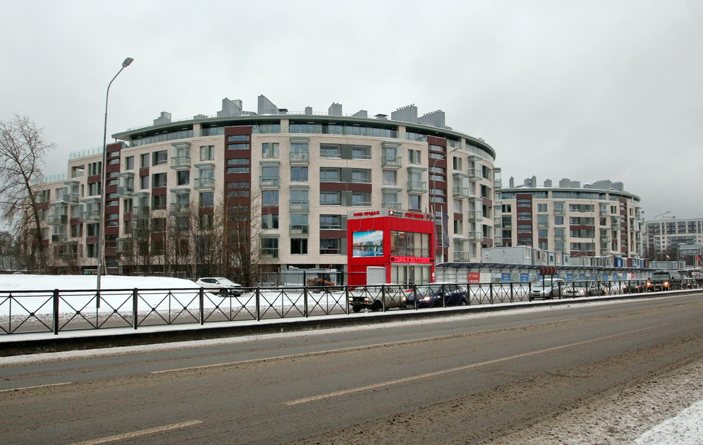 На Приморском проспекте, 46, завершилось строительство жилого дома, состоящего из двух подков. Он возник на месте старинного завода, при этом, в нарушение охранной зоны, девелопер отказался его воссоздавать.