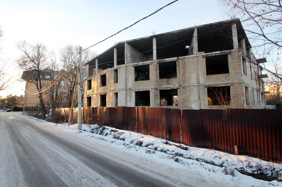 В 2007 году власти выдали разрешение на строительство здесь индивидуального жилого дома. Согласно информационному щиту, заказчиком было ООО «Пронтон». Фирма планировала возвести четырехэтажное здание. Но в реальности оказались готовы железобетонные конструкции трех этажей, а также наружные стены двух из них.