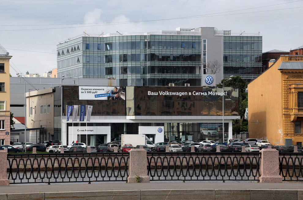 На этой неделе здание ввели в эксплуатацию. Оно хорошо видно с Пироговской набережной. Внешне фасады совершенно не похожи на те, что задумал «Экостройпроект+». По сути, это стекляшка без архитектуры с элементами стаканизма.