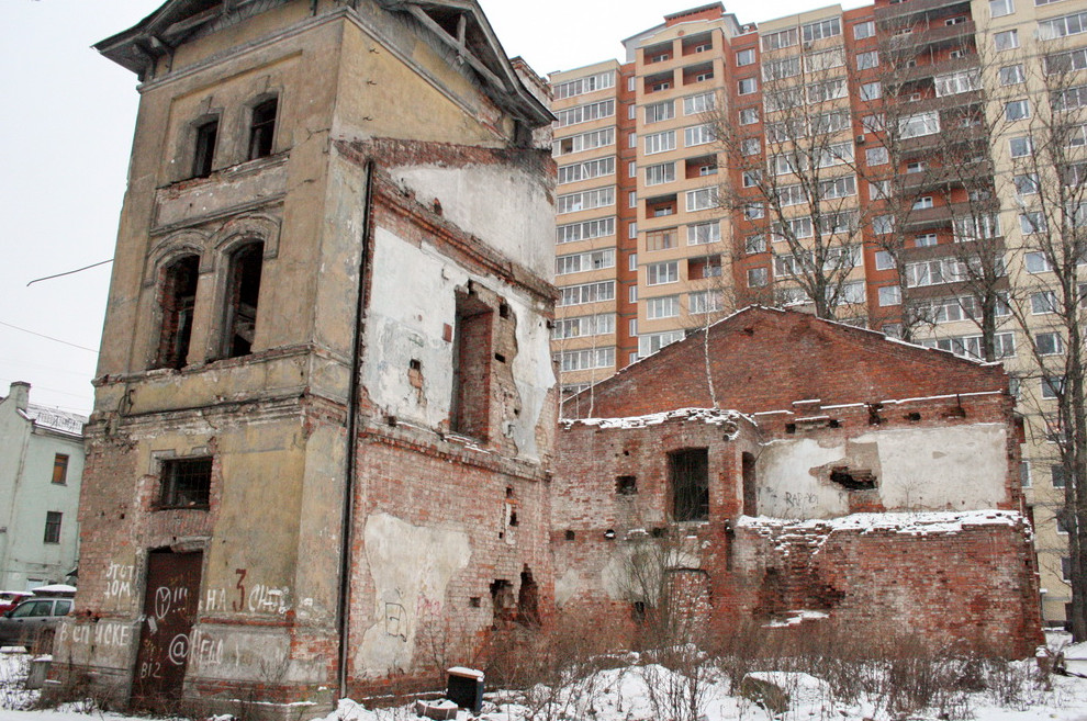 Два симметричных здания для прихода Смоленской церкви были построены в 1896 году. Они имели кирпичные и деревянные объемы. Оба числились выявленными памятниками архитектуры. Однако северный приходской дом (переулок Ногина, 3) находился в руинах: после пожара от него остались только кирпичные стены. В итоге в 2009 году его сняли с охраны, а в декабре 2011 года снесли. Демонтаж по заказу ООО «София» проводило ООО «Размах УП 1», входящее в группу «Размах». Затем длительное время там осталавался заросший пустырь.