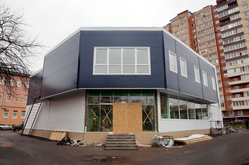 На прошлой неделе здание было введено в эксплуатацию. Внешне оно не завершено, но от погребальной архитектуры авторам слегка удалось уйти. В целом же здание выглядит как склад, несмотря на окружение из исторической застройки.