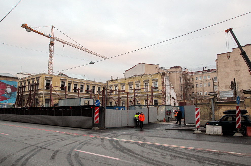 Недавно демонтажники вернулись: они снесли третий этаж корпуса, выходящего на Театральную площадь. Эти работы были предусмотрены контрактом, но ранее их не удалось выполнить из-за приостановки, рассказал сегодня «Канонеру» вице-президент Springald Виталий Никифоровский. По его словам, на этом демонтаж завершен.