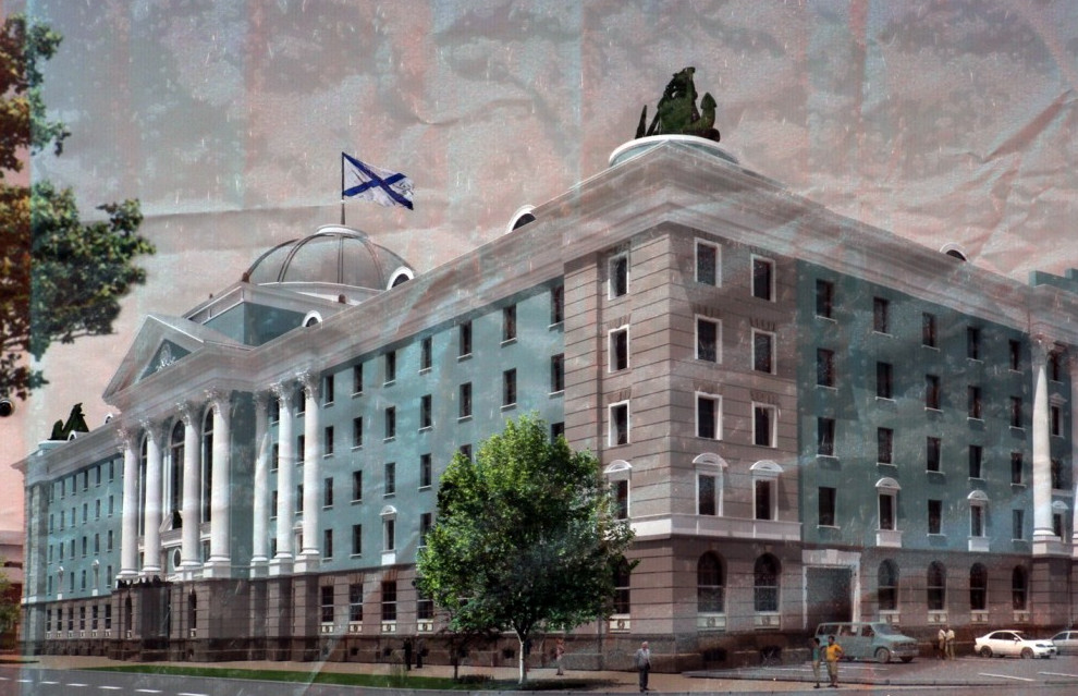 Новый корпус Нахимовского училища на Пеньковой улице, 5, будет решен в стиле классицизм. Спроектировано пятиэтажное здание с четырехколонным портиком и куполом.