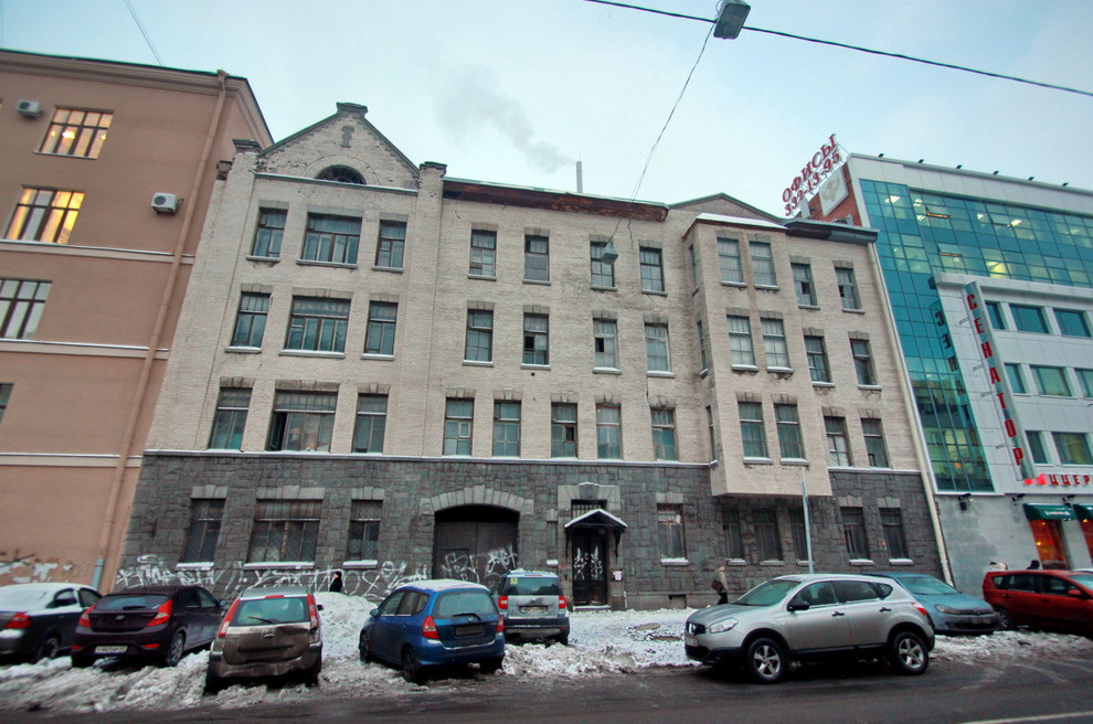 Четырехэтажное здание в стиле модерн было построено в 1910 году по проекту архитектора Оскара фон Витте. Оно входило в состав Товарищества завода пневматических машин (в советское время он стал заводом «Пневматика», на соседней территории выстроили новые корпуса). Долгое время дом пустовал, находясь в пользовании Горного университета.