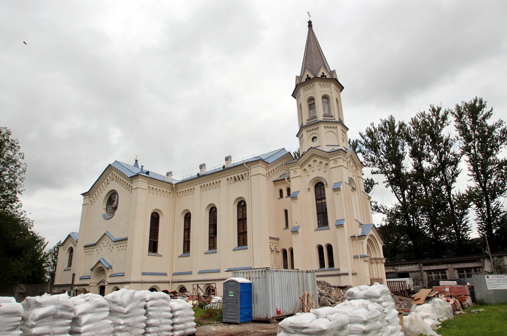 В прошлом году КГИОП выделил деньги и начал восстановление исторического облика костела. Проектом, созданным ОАО «Институт „Ленпроектреставрация“», предусматривалась окраска в соответствии с историческим колетом, воссоздание шатра колокольни и прежних окон.