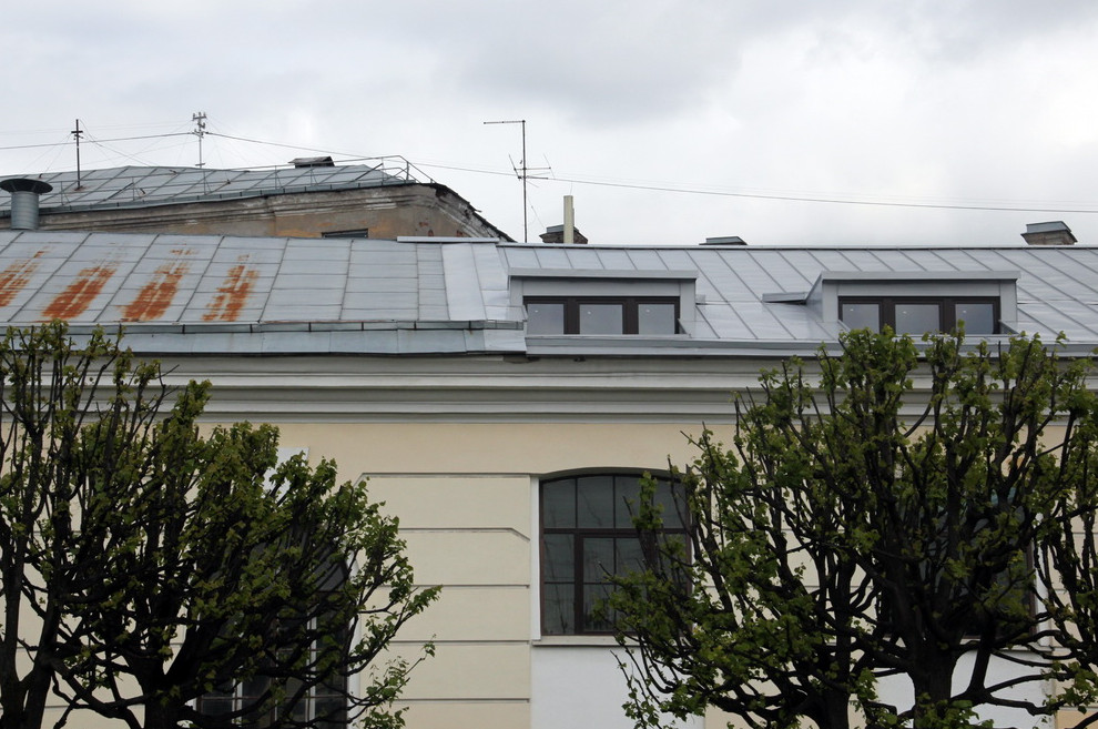 Конюшни Михайловского замка на Манежной площади надстроили мансардой, которая заметно исказила облик федерального памятника архитектуры. Ранее еще одна мансарда появилась на соседнем доме.