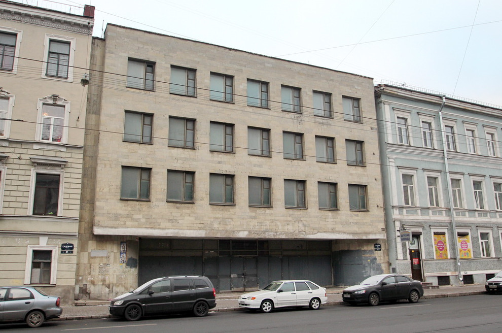 Четырехэтажное здание было построено в 1977 году для объединения «Ленинградодежда». Первый этаж был утоплен, его оформляли керамические панно на тему моды.
