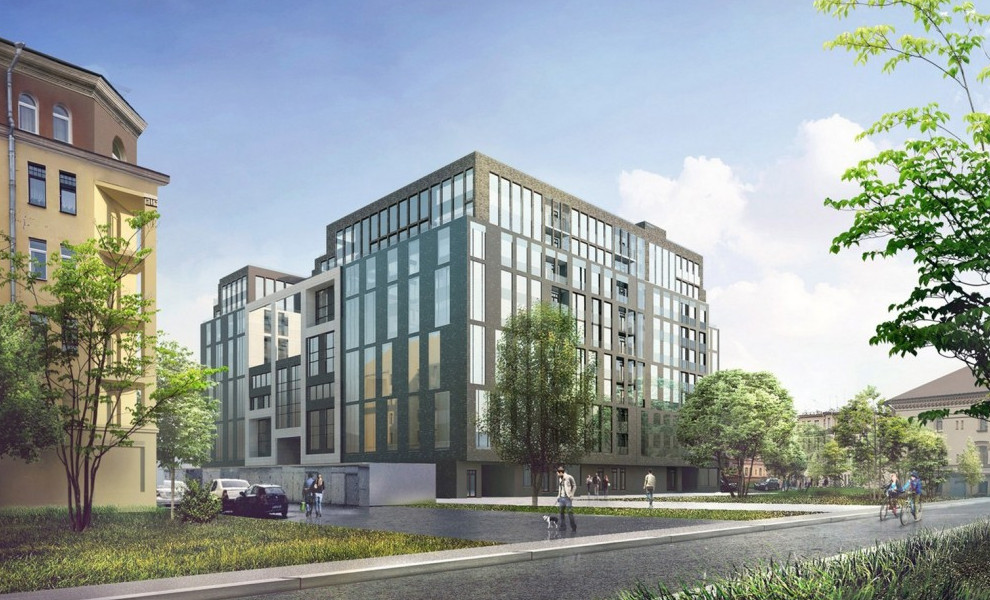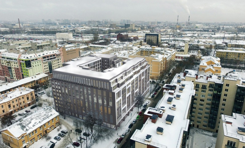 Проект сделало ООО «Проектно-производственная фирма „А.Лен“» Сергея Орешкина. Здание с двором-колодцем займет максимум территории, выйдя к тротуару Выборгской улицы. Фасады выполнены как смесь двух модных тенденций — хаотизма и стеклянно-балочной архитектуры.