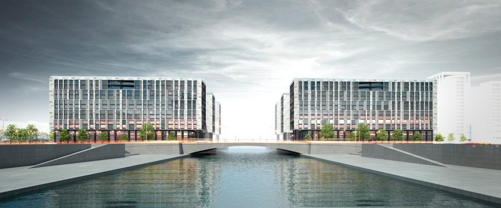 Два сквера на берегах реки Смоленки у моста Кораблестроителей застроят 12-этажными гостиницами. Внешний облик позволяет сделать предположение, что это будут дома постоянного проживания.