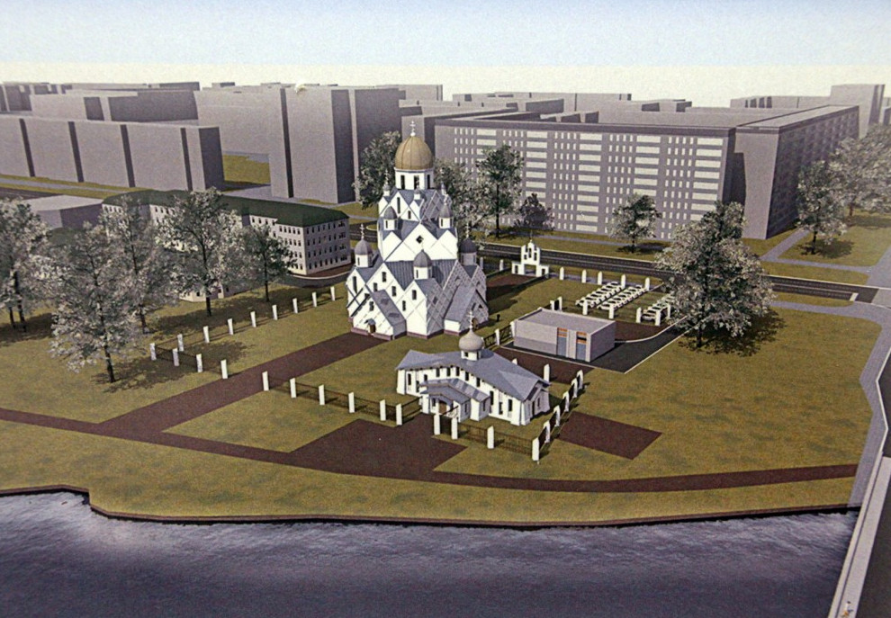 Рядом с Свято-Духовской церковью на берегу Ижорского пруда в Колпине планируется построить еще и собор. Его фасады решено выполнить в клеточку, напоминающую схему планировки квартир.