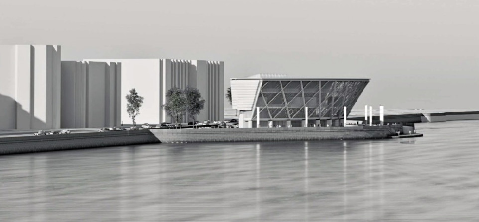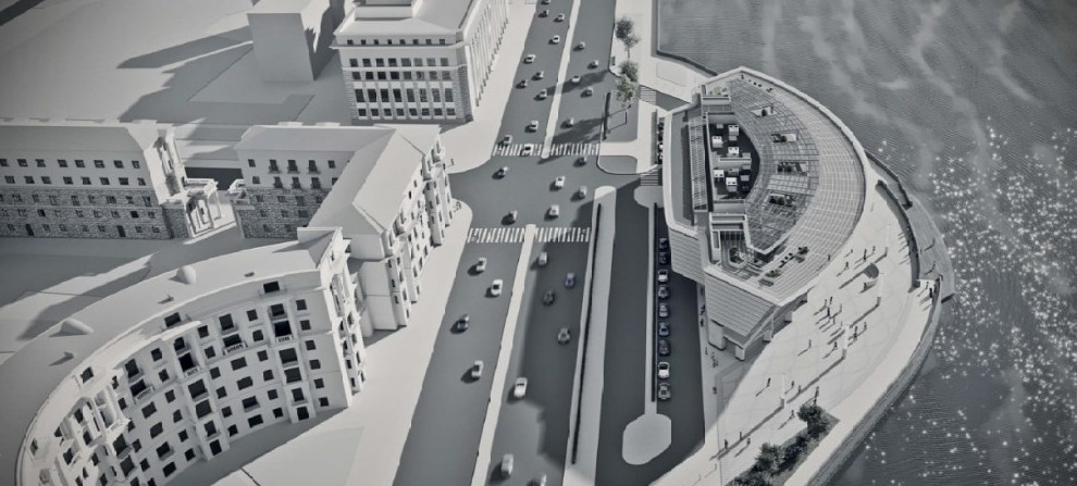 Сегодня на градсовете представили обновленный проект. Его разработало ООО «Урбис-СПб» Олега Харченко. Фасад, обращенный на воду, будет стеклянным. Чтобы увеличить площадь застройки, кверху он расширяется. К воде собираются устроить гранитный спуск.