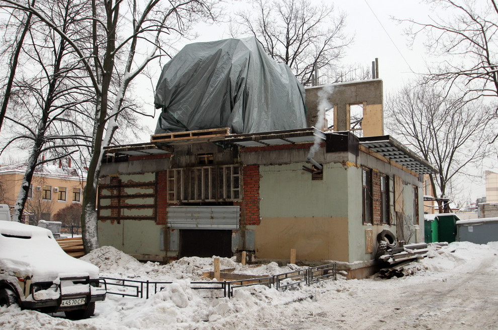 Бывшую прачечную на Большом проспекте Васильевского острова, 90, корпус 2, завершили надстраивать под офисы. Ранее власти уверяли, что эти работы незаконны, и требовали их остановить.