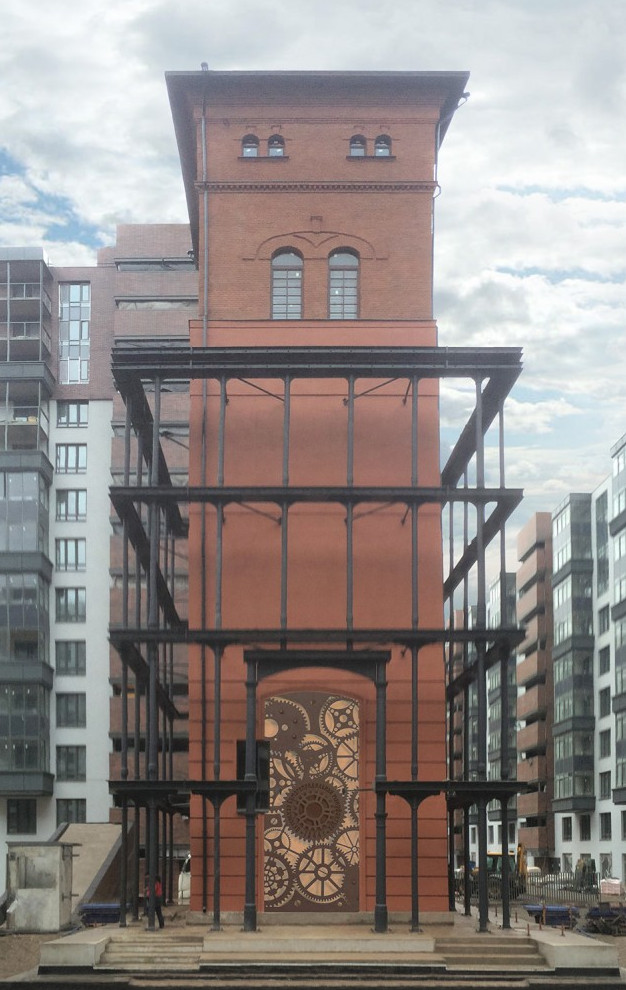 Отреставрированную водонапорную башню Охтинской бумагопрядильной мануфактуры на Пискаревском проспекте, 1, пока будут использовать только в декоративных целях. В мае на ее фасаде появится граффити.
