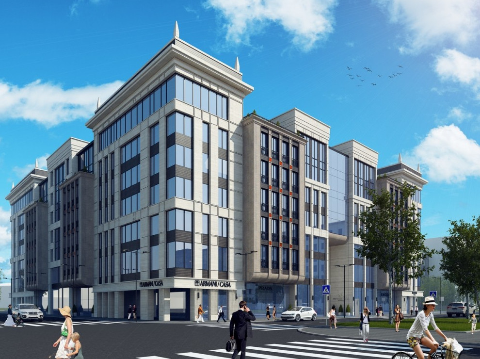 Первую версию проекта разработало ООО «Лайфкволити эволюшн» Андрея Литвинова. Было запланировано семиэтажное квадратное в плане здание с квадратным двором-колодцем, прорезанным трехэтажными арками. Фасады сделали в лаконичной современной архитектуре с использованием приема фрагментизм.