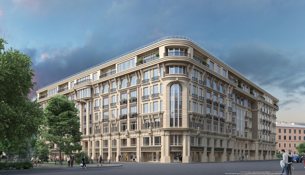 Однако этот проект положили на полку. Новый сделало ООО «Архитектурное бюро „Сэтл сити“». Дом также имеет семь этажей, но фасады выполнены в духе купеческого модерна с богатым декором.