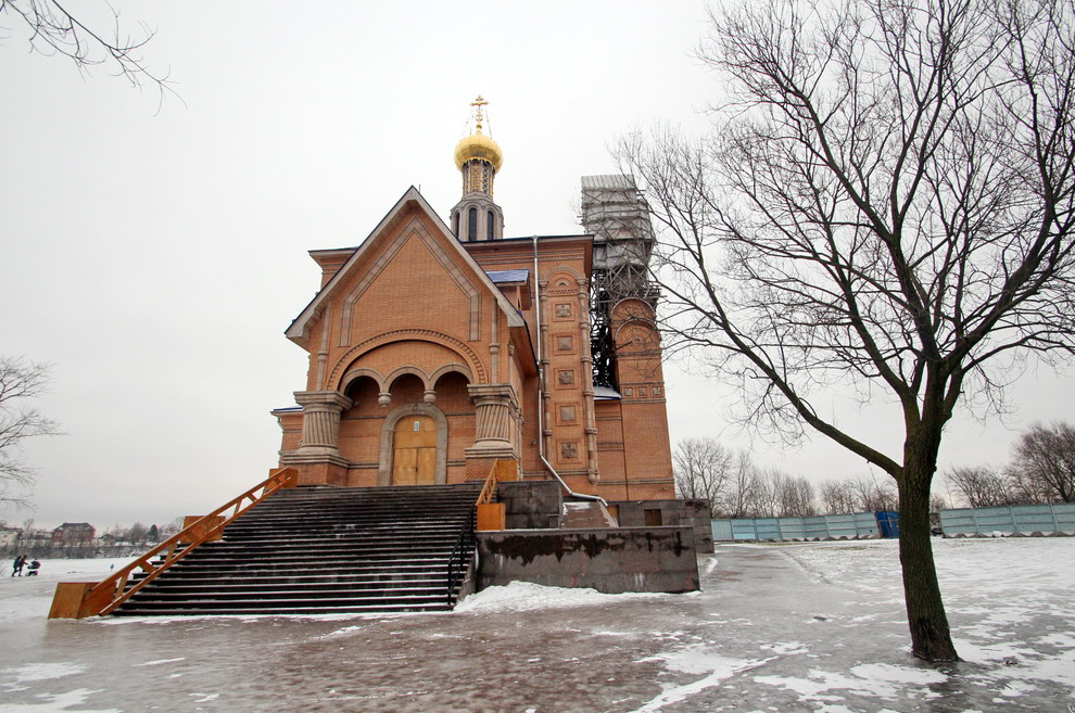 В Рыбацком на Рыбацком проспекте завершилось строительство Рождественской церкви. Ее спроектировали по образу храма в Дармштадте и разместили в зеленой зоне на берегу Невы в створе Прибрежной улицы.