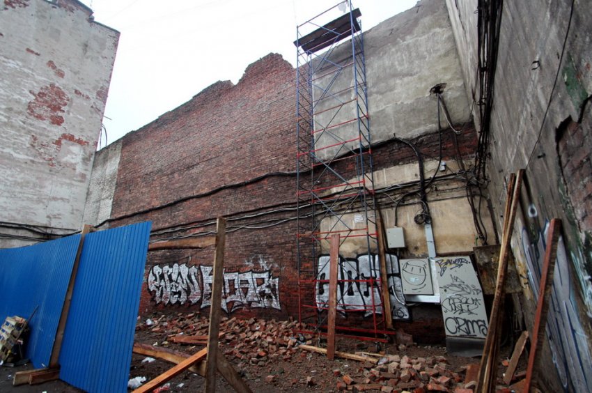 Дом Малоземовой на Лиговском проспекте, 56, готовят к сносу для строительства гостиницы. Сейчас подрядчик проводит внутренний демонтаж в помещениях лицевого флигеля, а также разборку кирпичной кладки.