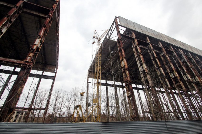 Недавно очевидцы заметили, как промышленные альпинисты с помощью крана начали демонтировать железобетонные фрагменты кровли. Узнать какие-либо подробности «Канонеру» не удалось.