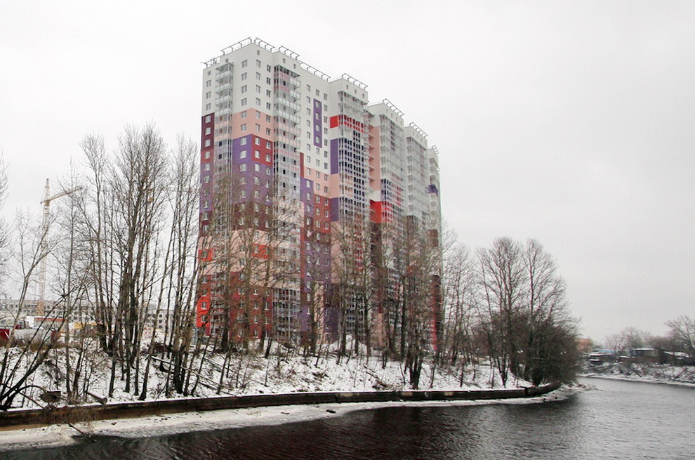 В октябре «Потенциал» ввел первый жилой дом — вдоль проспекта Энергетиков. А на прошлой неделе было сдано здание вдоль Охты. Если остальные корпуса представляют собой коробки, то этот выполнен как бумеранг вдоль изогнутого берега реки. Адрес ему присвоили такой: проспект Энергетиков, 9, корпус 3.