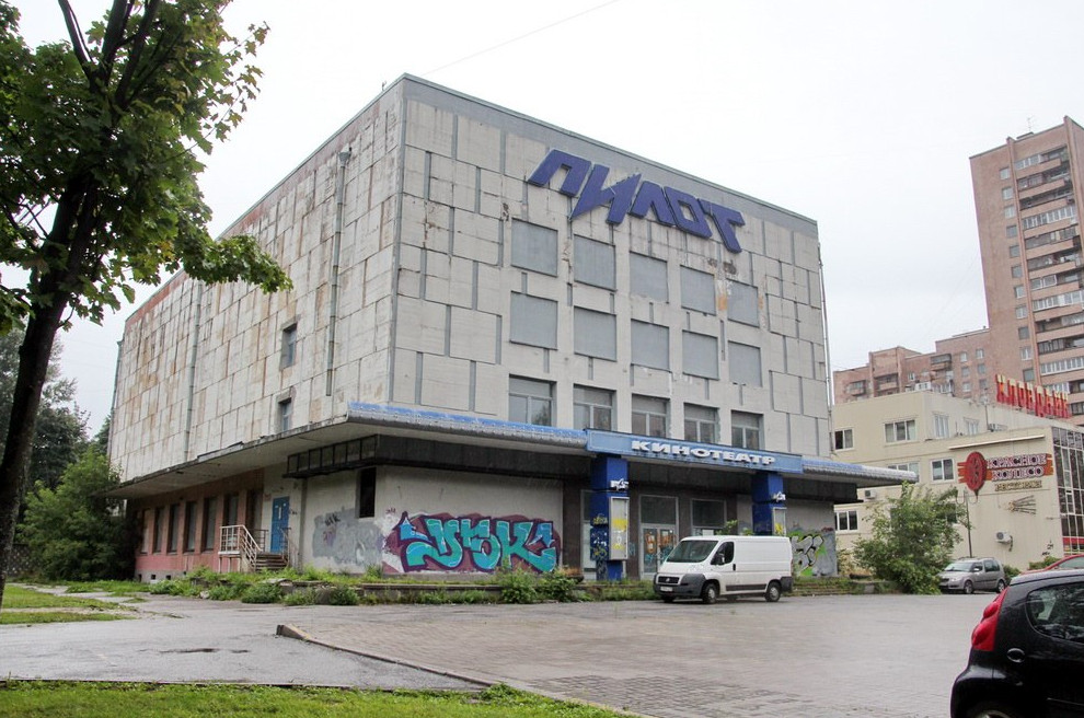 Типовой кинотеатр рядом с площадью Мужества был построен в 1963 году. Тогда он именовался «Выборгским». В 1990-х буквы заменили — с тех пор это был «Пилот». В 2000-х на главном фасаде прорубили окна — по всей видимости, для размещения внутри ночного клуба.