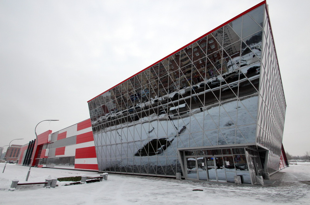 На месте гаражного кооператива на углу Дунайского проспекта и проспекта Космонавтов завершили строительство торгового комплекса. Главным элементом фасада стали зеркальные наклонные поверхности.