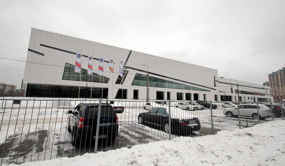 На Российском проспекте завершилось строительство ледового дворца хоккейного клуба СКА. Ради него срыли часть кургана, который входит в состав Яблоновского сада.