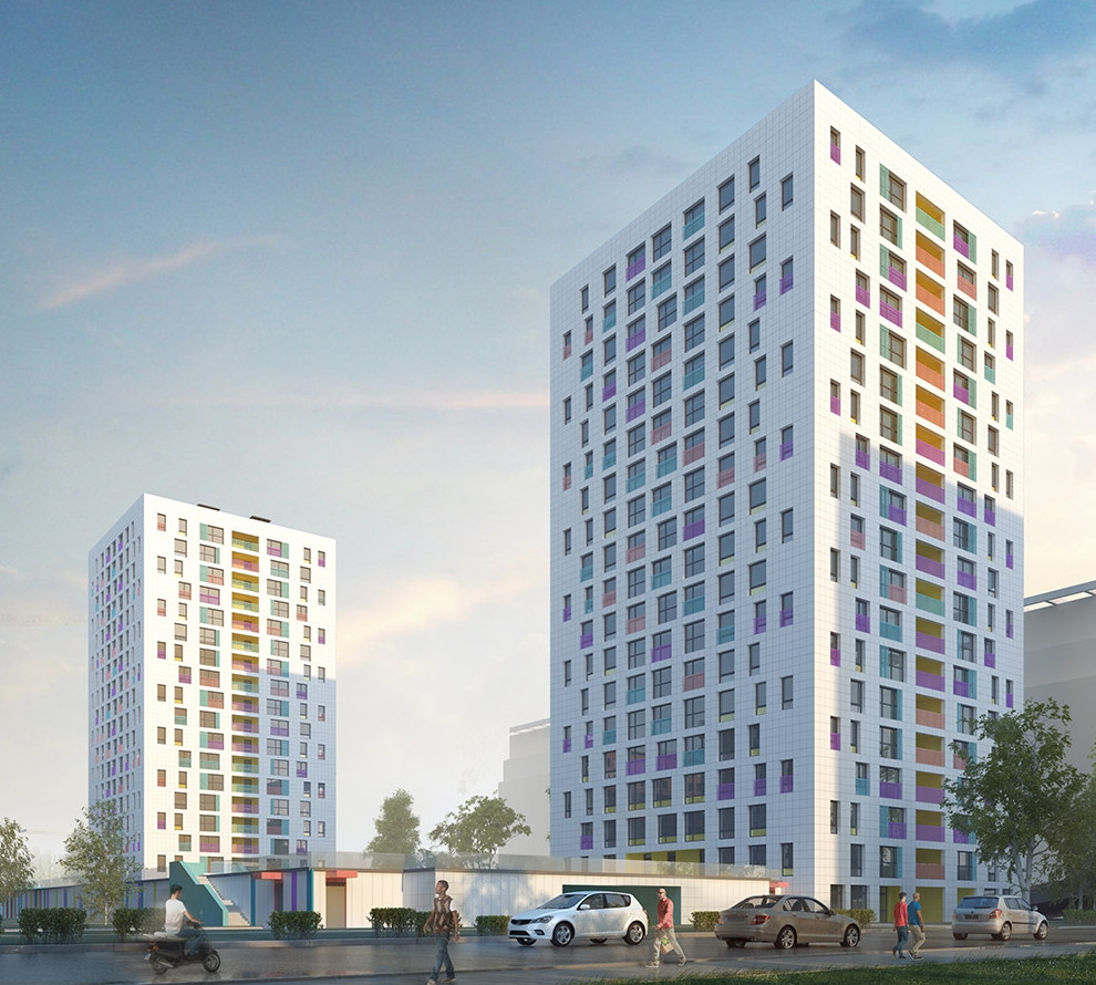 ЛенспецСМУ представило проект жилого микрорайона «Галактика» вдоль Парфеновской улицы. Фасады домов напоминают раскрашенные и увеличенные в размерах хрущевки.