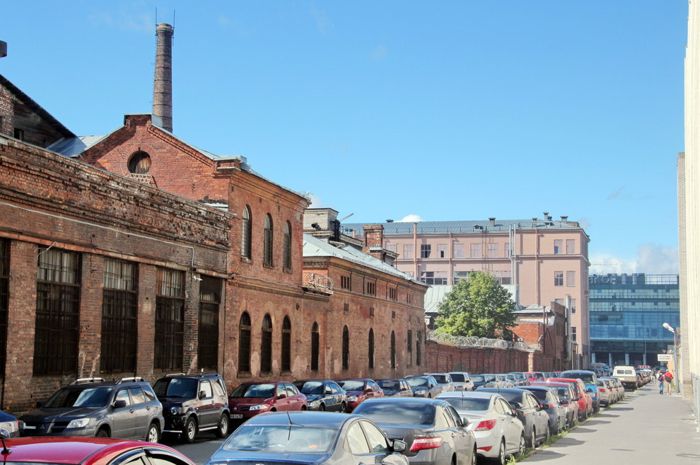 В ведении ОАО «Концерн „Морское подводное оружие — Гидроприбор“» (в него входит ОАО «Завод „Двигатель“») находится квартал между Пироговской набережной, Евпаторийским переулком, Большим Сампсониевским проспектом и Сахарным переулком, а также кусок соседнего квартала между Пироговской и Оренбургской улицей. Этой земли предприятию мало, поэтому под собственную стоянку оно перекрыло участки Сахарного переулка и Оренбургской улицы.