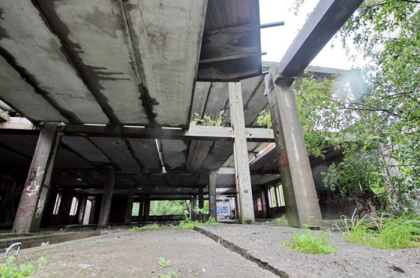Два этажа из бетонных блоков и плит были сооружены на рубеже 1980–1990-х годов. Работы бросили из-за кризиса, и с тех пор к завершению строительства не приступали.