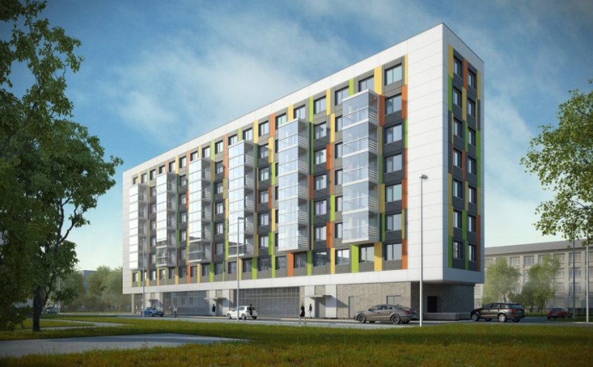 Представлен проект жилого дома, который хотят построить на Герасимовской улице, 5, корпус 2. Это будет восьмиэтажная прямоугольная коробка с хаотичными разноцветными вставками.
