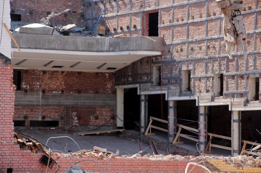 Вчера завершился один из самых сложных этапов — демонтаж железобетонных ферм над зрительным залом, рассказал сегодня «Канонеру» гендиректор «Ирона» Вячеслав Рот. По его словам, теперь предстоит вывести оставшийся мусор и передать объект в руки строителей.