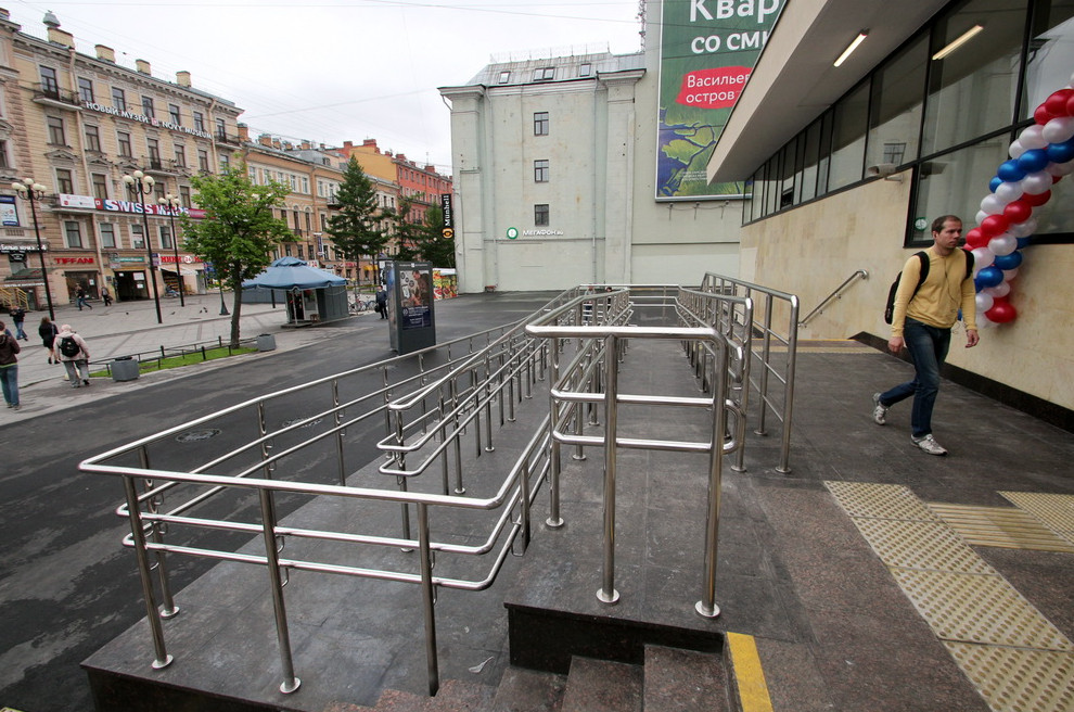 На стилобат уложили новый гранит. А с прилегающей территории убрали металлические заграждения для разделения потоков. Как объяснили в Петербургском метрополитене, после открытия второго выхода «Спортивной» там надеются, что они больше не пригодятся.