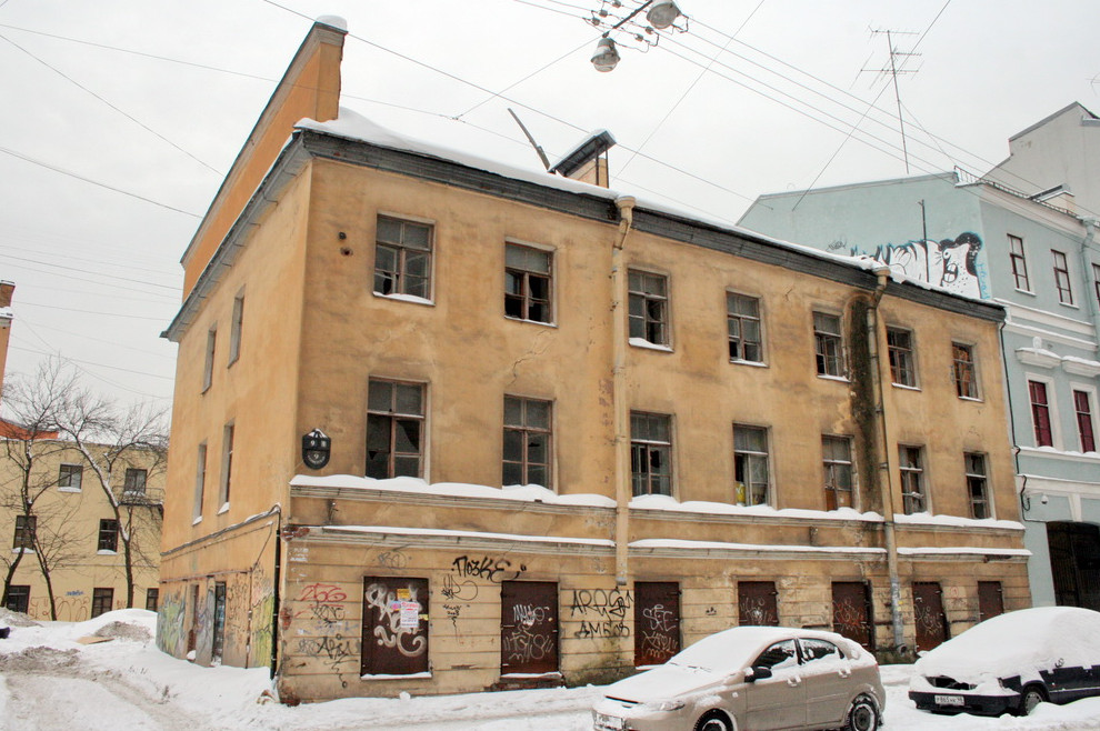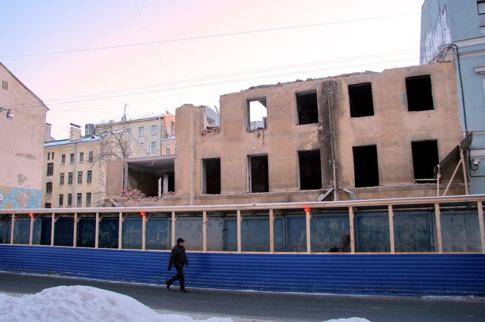 Трехэтажная историческая постройка занимала не весь участок, а только его северную четверть, примыкая к дому 7. Она была возведена в 1852 году по проекту архитектора Адольфа Голле, а в последнее время стояла заброшенной. В феврале 2011-го трехэтажку принялись сносить.